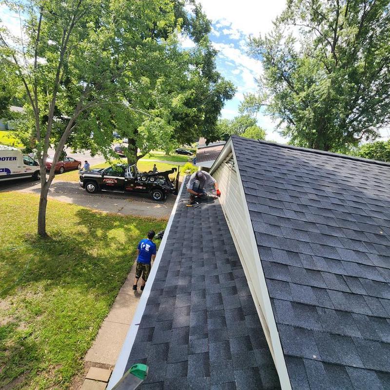 Mike Miller's Roofing removed old shingles and installed GAF Timberline Shingles on a residential roof in St. Cloud, Minnesota. The crew completed the tear-off and re-shingle process to improve roof durability and weather resistance. GAF Timberline Shingles offer strong protection and are commonly used for residential roofing projects.